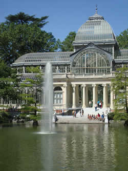 El Palacio de Cristal (Crystal Palace) in Madrid's Parque del Retiro. The palace is an extension of the Museo de la Reina Sofía and hosts modern art exhibits.