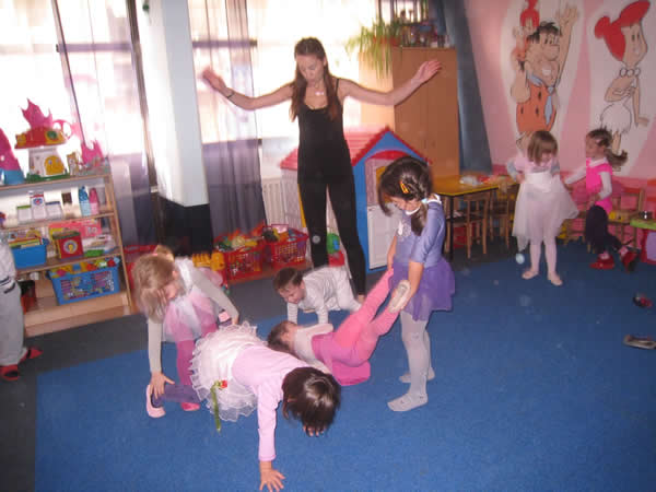 Teaching dance at my kids' preschool. Mostly fun, but as evidenced by the semi-chaos, it is often an exercise in futility thanks to my poor Serbian language skills.